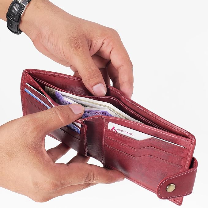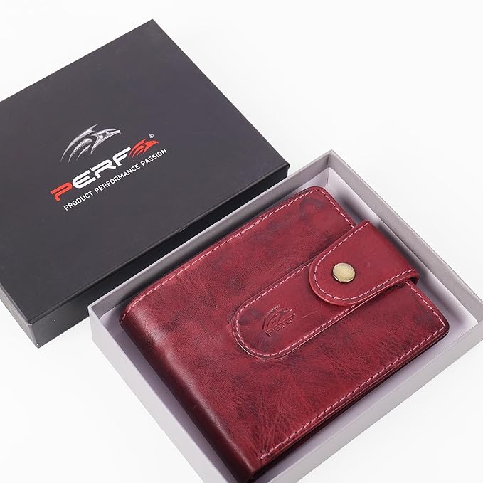 PERF Genuine Leather Men’s Wallet | Multi-Compartment with Secure Button Closure | Premium Feel & Trendy Royal Design