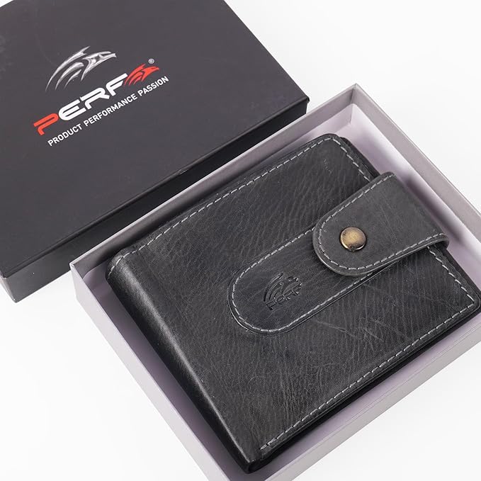 PERF Genuine Leather Men’s Wallet | Multi-Compartment with Secure Button Closure | Premium Feel & Trendy Royal Design