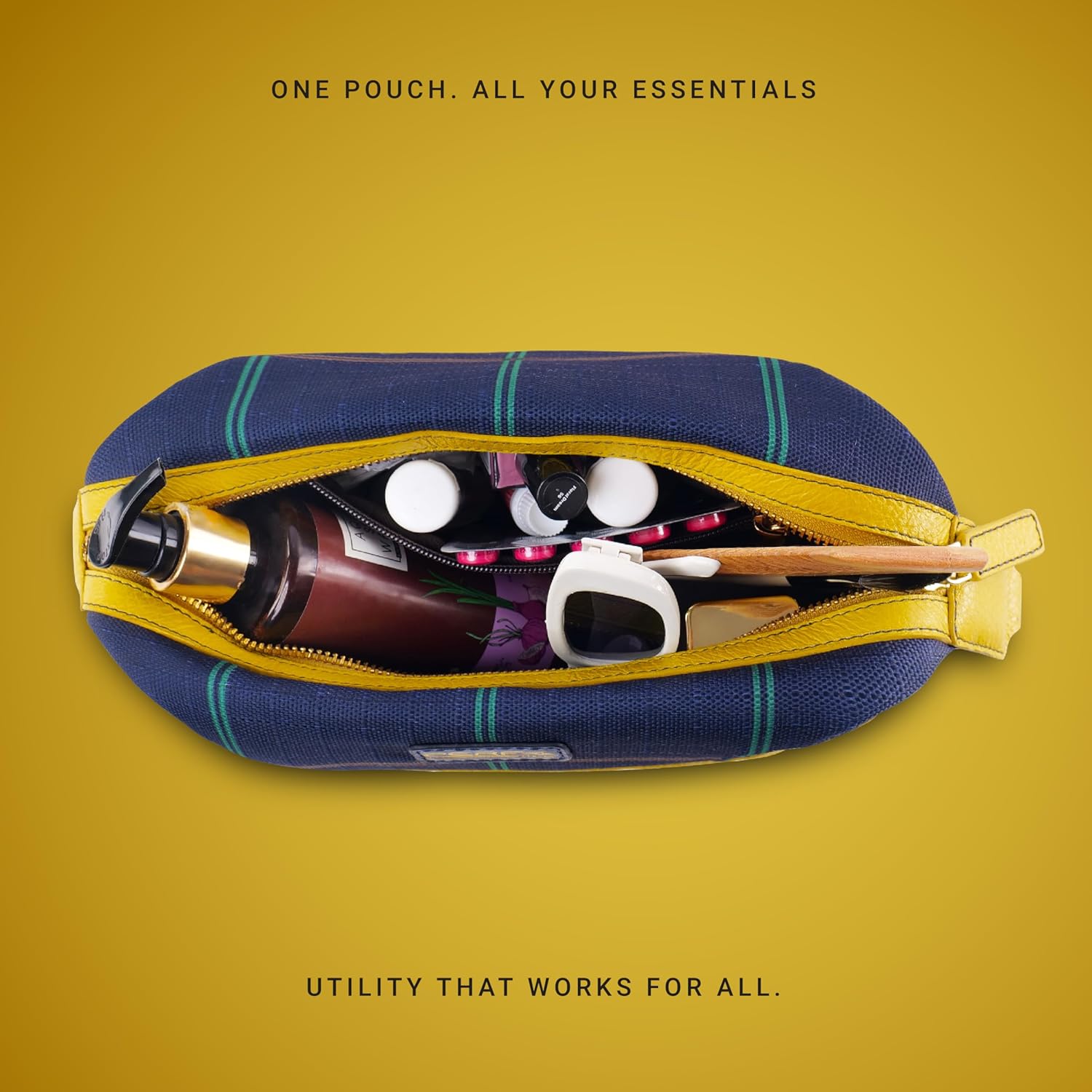 PERF Genuine Leather Travel Kit Bag | Unisex Toiletry Bag & Makeup Organizer | Multipurpose |Coated Nylon + Punch Leather Pouch for Men & Women with Adjustable Side Loops (Navy)
