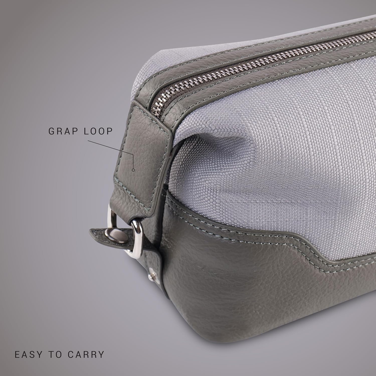 PERF Genuine Leather Travel Kit Bag | Unisex Toiletry Bag & Makeup Organizer | Multipurpose |Coated Nylon + Punch Leather Pouch for Men & Women with Adjustable Side Loops (Navy)