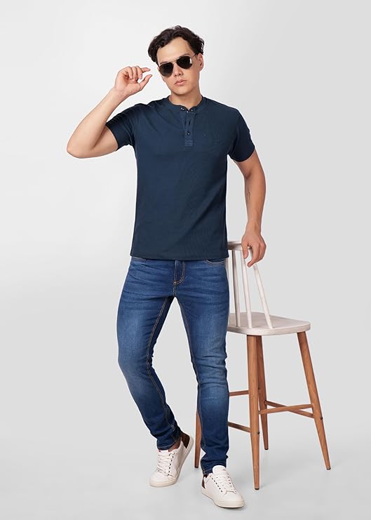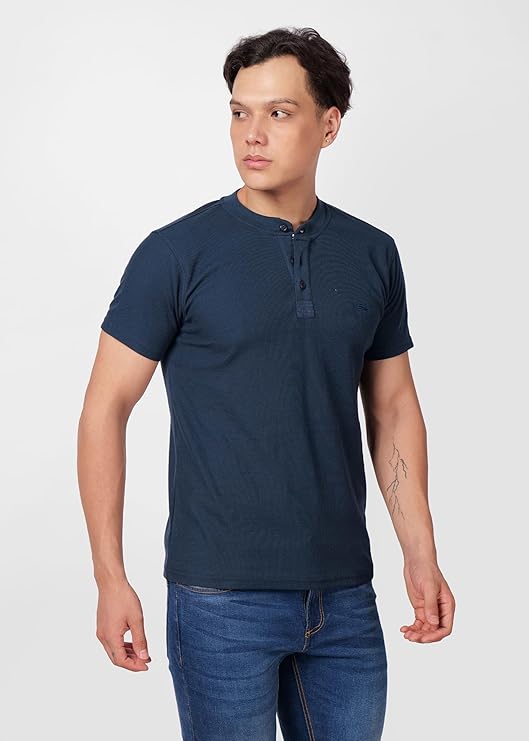 PERF Men's Henley Neck T-Shirt | Cotton Blend Casual Slim Fit Shirt | Half Sleeve Stylish Everyday Tee