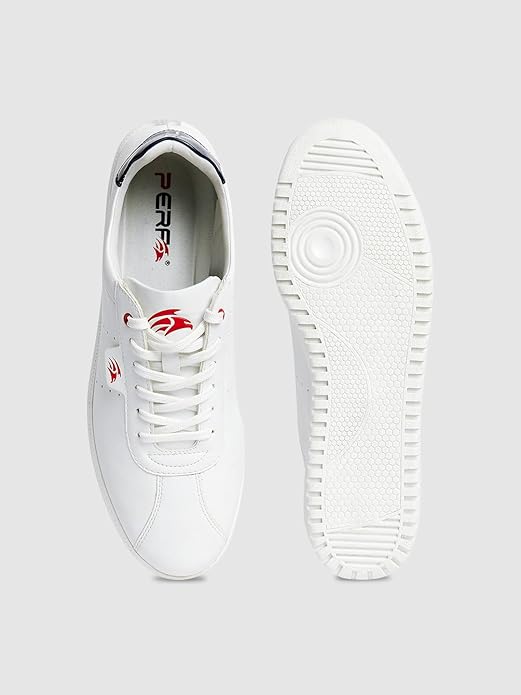 PERF Men's White Sneakers - Stylish & Trendy Casual Shoes, PU Upper, TPR Sole, Super Comfortable, Lightweight Fashion Sneakers