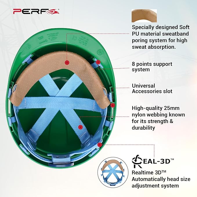 PERF Safety Helmet for Construction & Outdoor Work|Easy 3D Fitting System for Any Head Size|Lightweight|8-Point Support Easy Impact Absorption Sweatband|XPrssPNV(Blue)