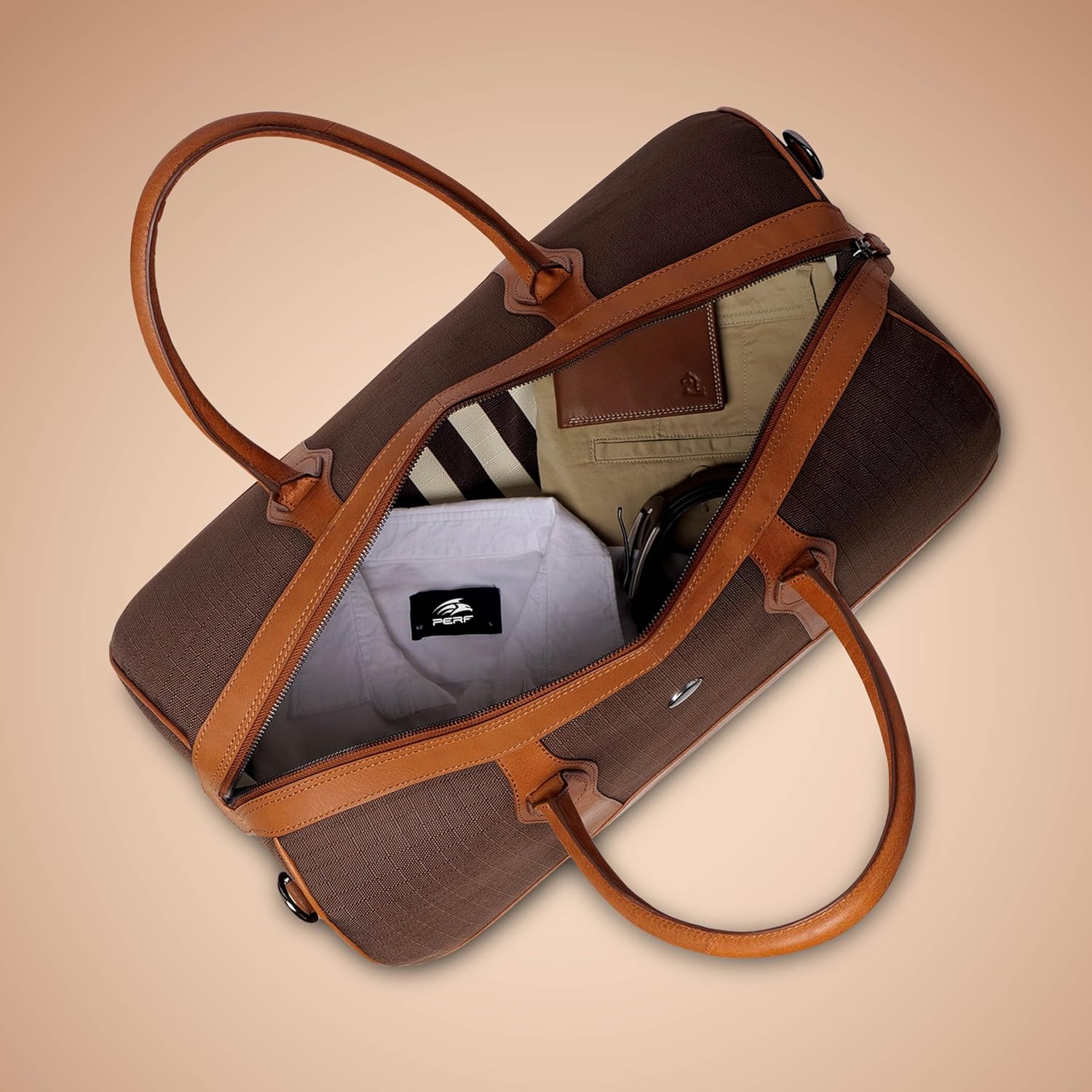 PERF Unisex Duffle Bag | Multipurpose with Genuine Leather | Travel, Gym & Weekend Bag