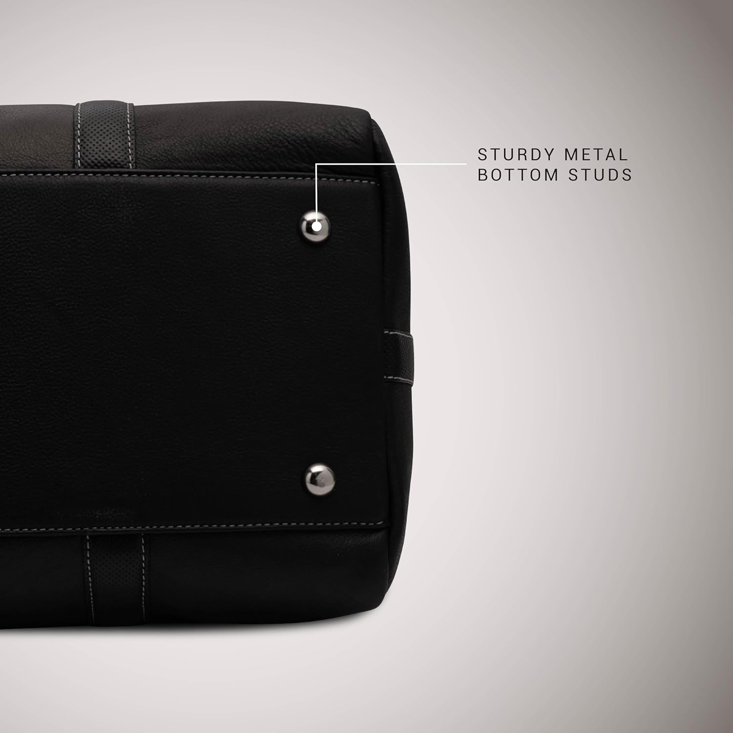 PERF Double Zip Briefcase Bag | Unisex Genuine Leather Office Laptop Bag | Sleek Business Handbag with Dual Compartments