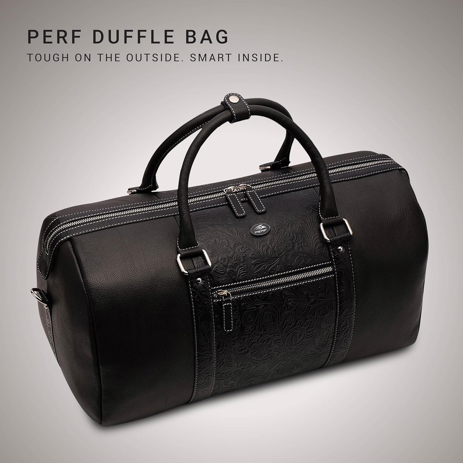 PERF Unisex Duffle Bag | Multipurpose with Genuine Leather | Travel, Gym & Weekend Bag